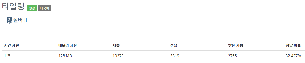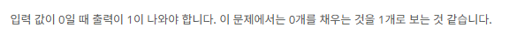 타일이 들어갈 공간이 존재하지 않으므로 0이 맞는 풀이라고 생각한다.