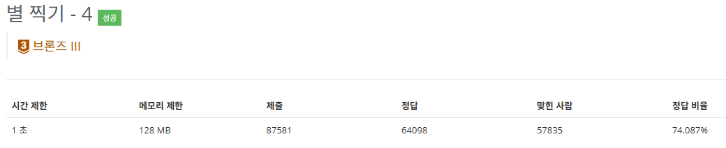 이정도 난이도의 별 찍기는 뭐 숏코딩의 영역이라 봐도 되는 것 같다.